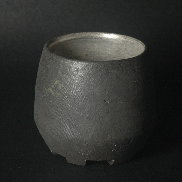 【窖窯による酸化焼成+ガス窯による冷却還元+上絵付焼成】 ロクロ成形後に表面を箆でならし、混錬せず原土の雰囲気を持たせた粘土でレリーフを作り、貼り付け、窖窯で酸化焼成後、残った灰を溶かすためガス窯で冷却還元焼成。 最後に銀彩を施した作品。 容量が約8割で100ml お酒用としてはもちろん、お茶やコーヒーにも〇 お手入れは、通常の器と同様で結構ですが、長時間しまう場合にはよく乾燥させてください。 幅:74㎜ 奥行:75㎜ 高さ:60㎜ 容量:100ml(8割) ※計測はおよその値です。ご了承ください。 作家:内田和彦