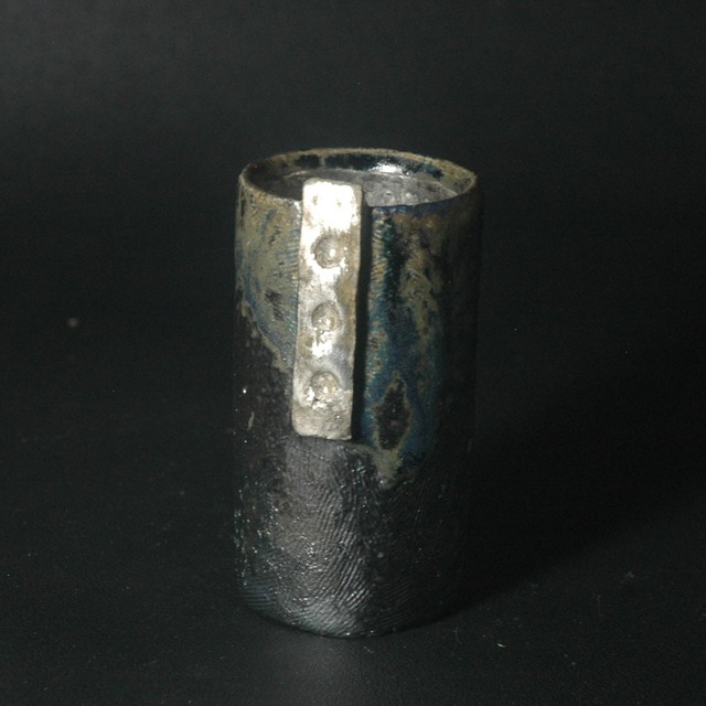 【窖窯による酸化焼成+ガス窯による冷却還元+上絵付焼成】 ロクロ成形後に表面を箆でならし、混錬せず原土の雰囲気を持たせた粘土でレリーフを作り、貼り付け、窖窯で酸化焼成後、残った灰を溶かすためガス窯で冷却還元焼成。 最後に銀彩を施した作品。 容量が約8割で60ml ショット杯としてはもちろん、一輪挿しにも〇 お手入れは、通常の器と同様で結構ですが、長時間しまう場合にはよく乾燥させてください。 幅:47㎜ 奥行:49 ㎜ 高さ:89㎜ 容量:60 ml(8割) ※計測はおよその値です。ご了承ください。 作家:内田和彦
