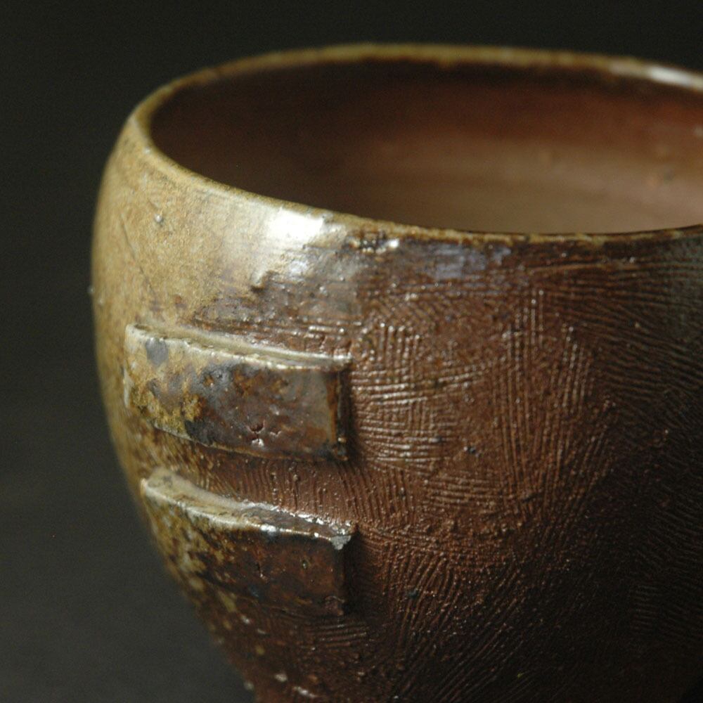 ろくろ成形後、表面を箆で成形し、原土仕立てのレリーフが付けられています。