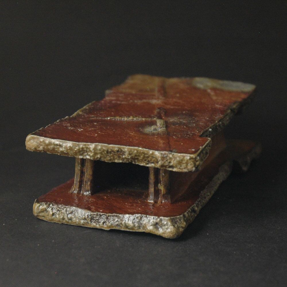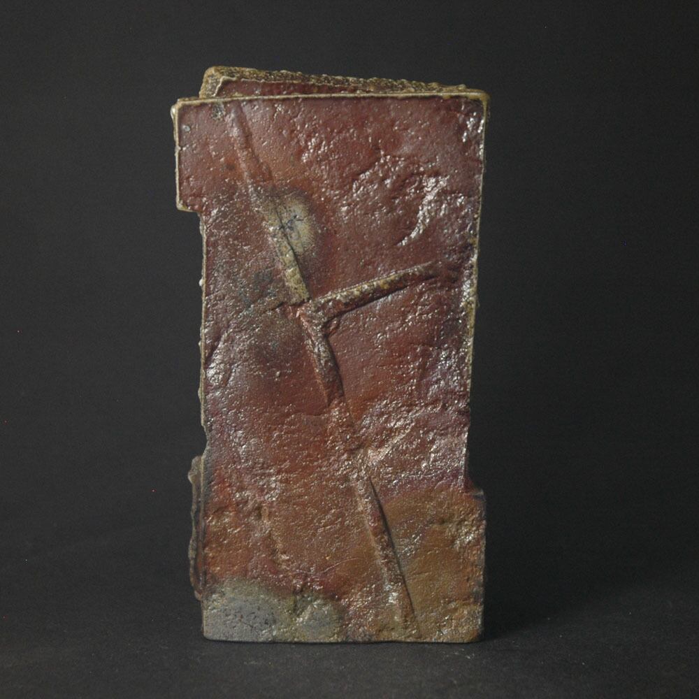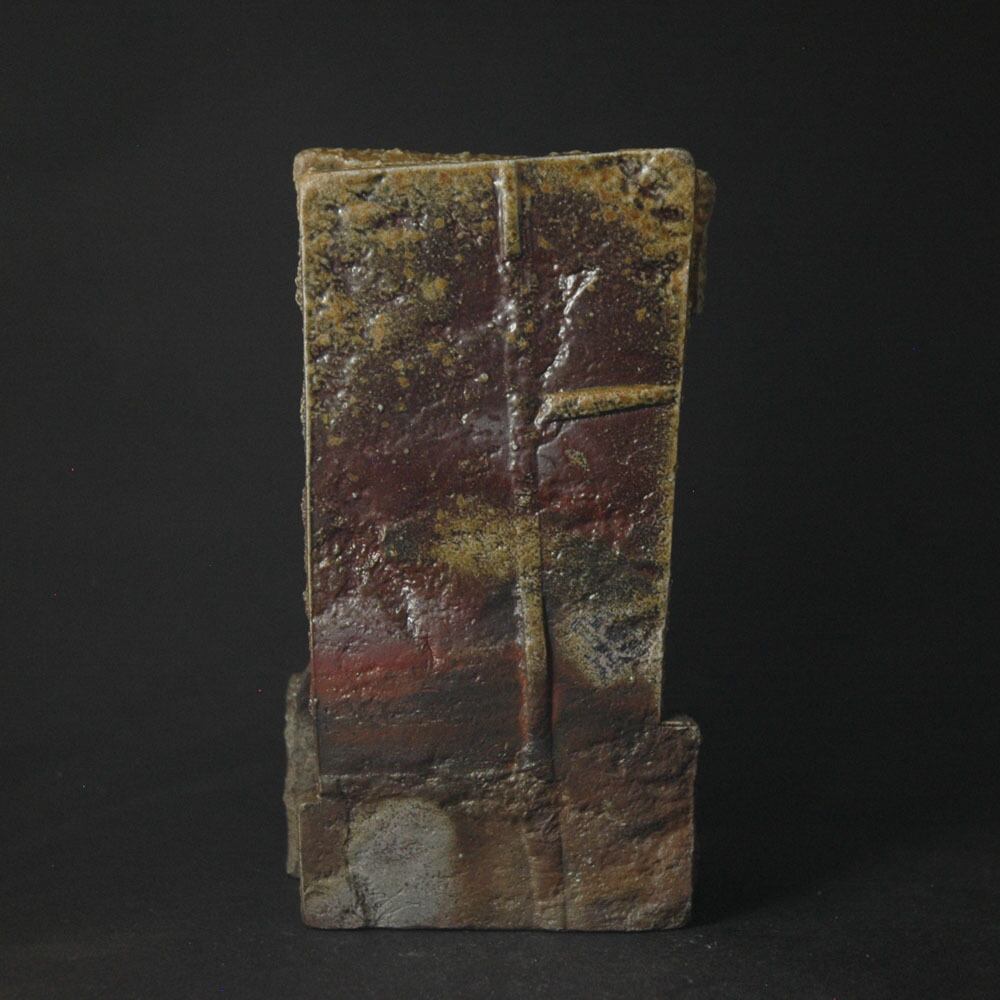 石目などで加飾したタタラ板をランダムにカットし、張り合わせて作った一輪挿し。