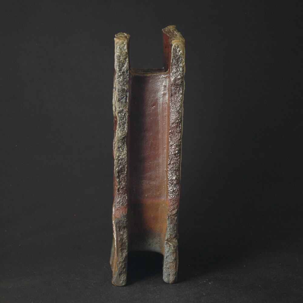 備前焼の窯変で炭サンギリといわれる窯変で、焼成完了時に器の周りに木炭を投入し、強還元状態を創り出す。備前焼の発色は、基本粘土に含まれるの鉄分(約5~7%)の変化に由来し、赤~黒・灰など様々に変化する。