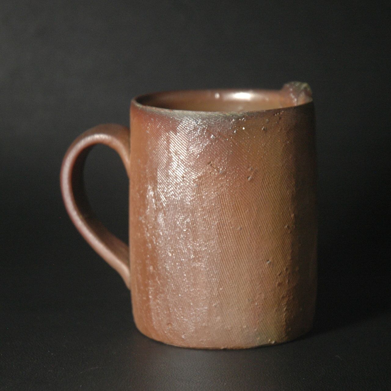 ロクロ成形後に表面を箆でならし、混錬せず原土の雰囲気を持たせた粘土でレリーフを作り、貼り付け、角窯(薪窯)で焼成。焼成最終段階で作品の間に木炭を投入。炭サンギリと呼ばれる技法で仕上げられた作品。