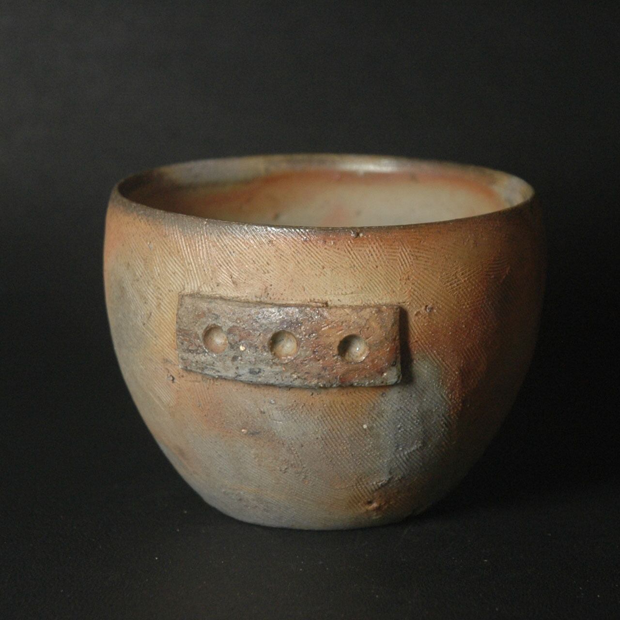 ろくろ成形のカップに、原土によるレリーフが施された植木鉢。