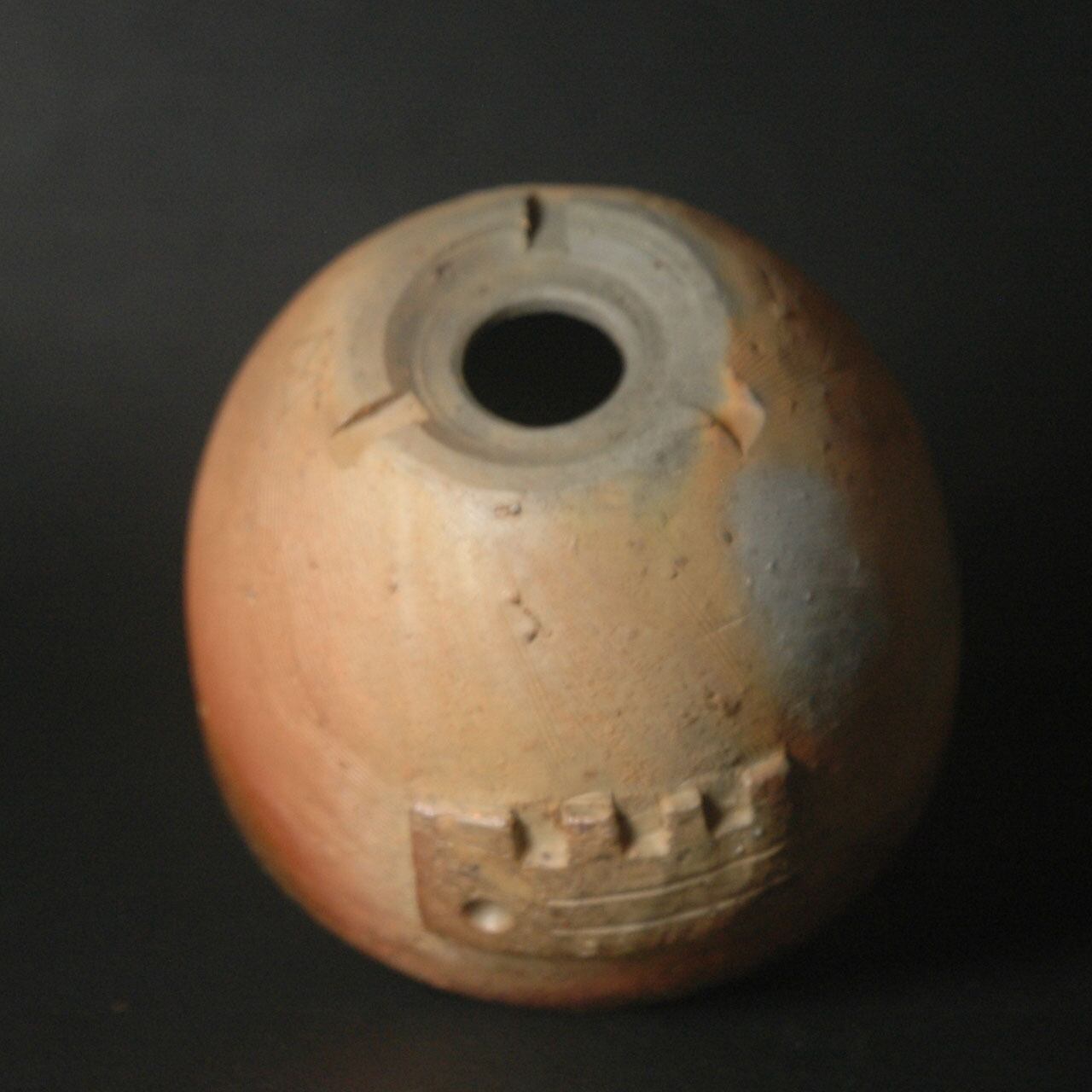 焼成完了時、作品の間に炭を入れて作る炭サンギリと呼ばれる窯変の作品。