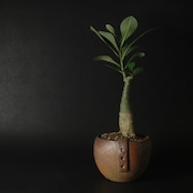 ろくろ成形のカップに、原土によるレリーフが施された植木鉢。