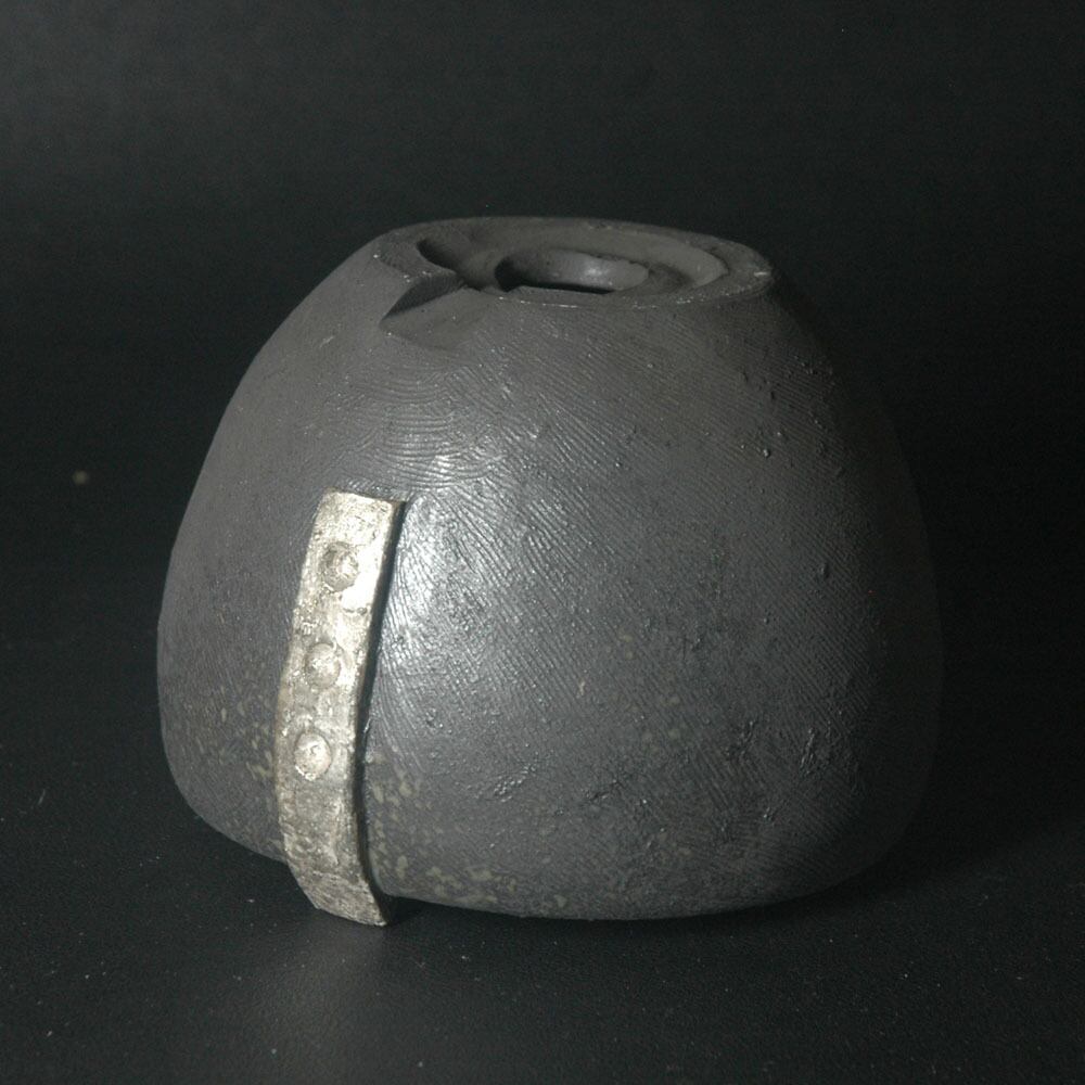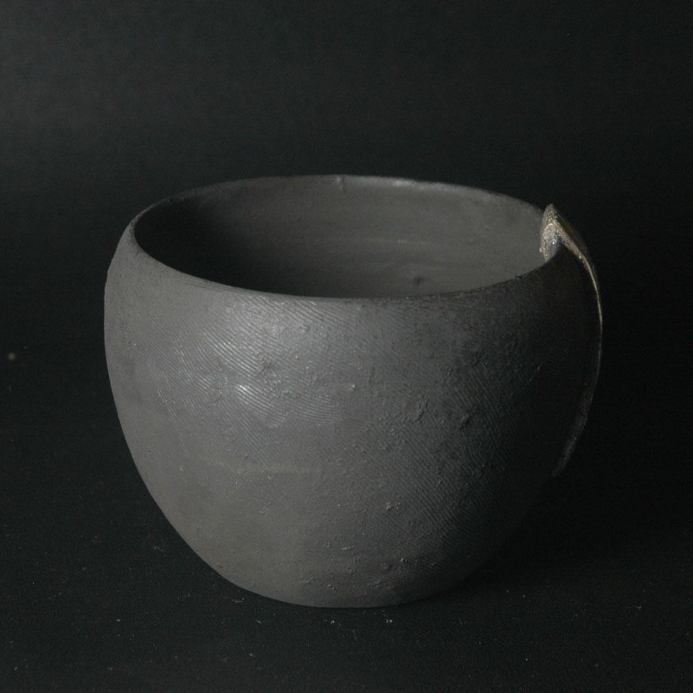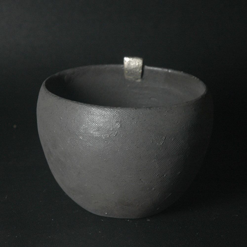 ろくろ成形のカップに、原土によるレリーフが施された植木鉢。