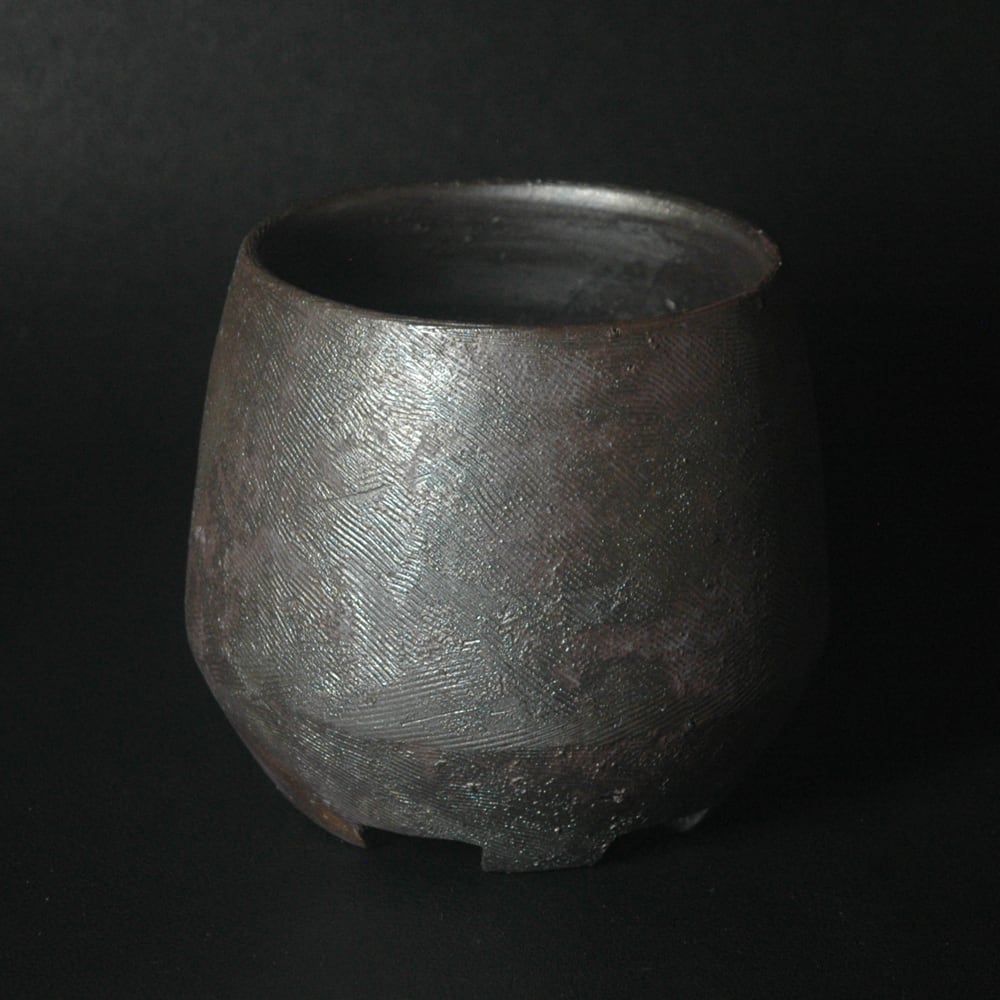 成形後、全体に非精製含鉄材料(鬼板など)を塗布し冷却還元焼成。